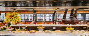15h45: Quay trở lại tàu để thưởng thức tiệc sunset ngắm mặt trời xuống biển, nhâm nhi 1 chút rượu vàng cùng hoa quả thư giãn trong khi tàu trở về bến Tuần Châu
